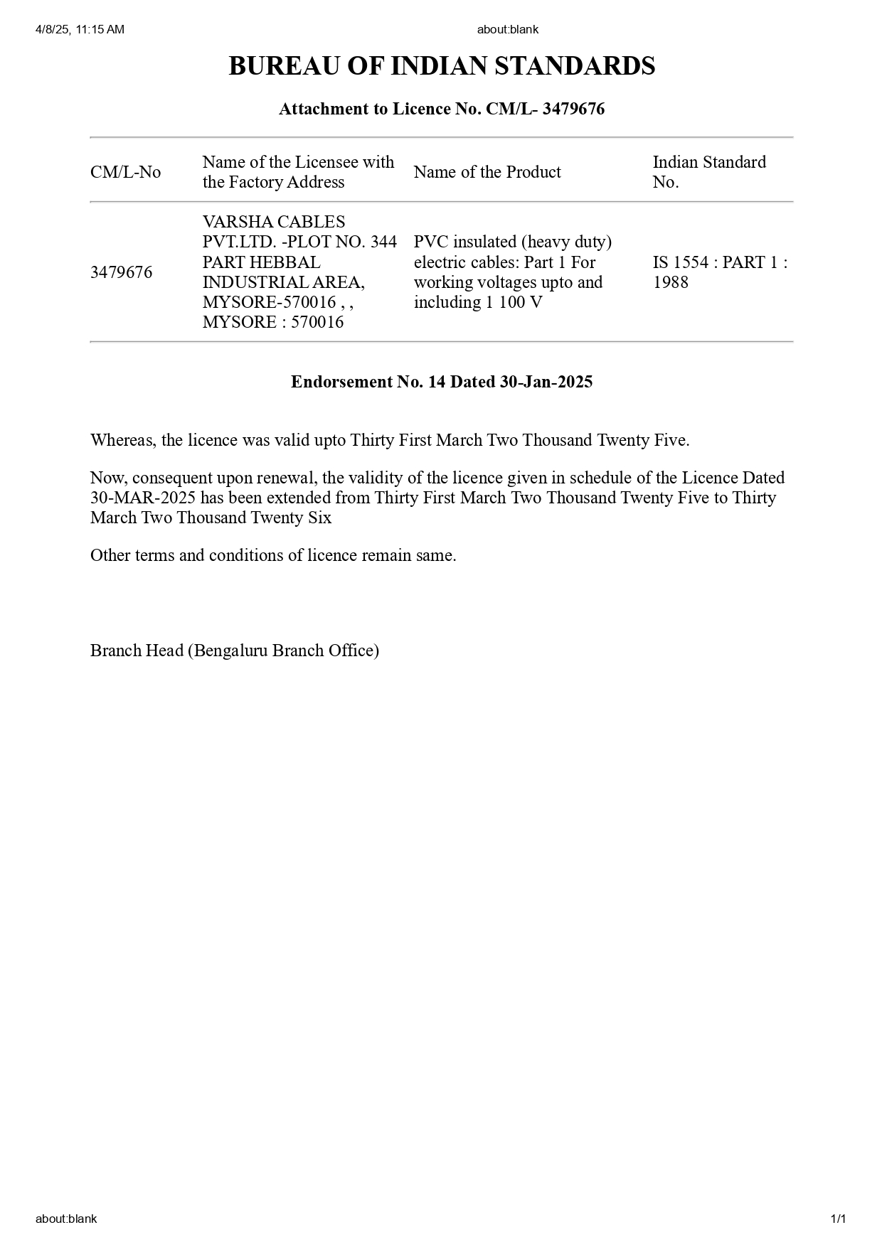 ![]() BIS 1554 Lisence |