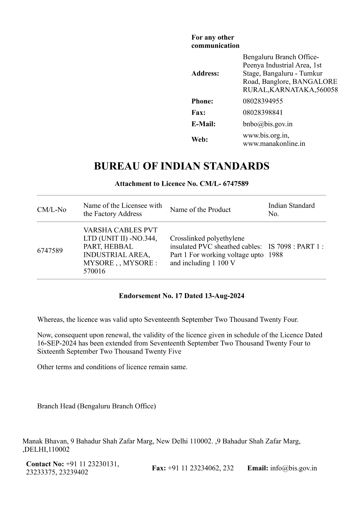 ![]() BIS 7098 Lisence |